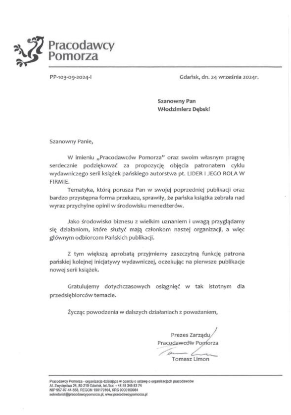 LIDER WSPÓŁPRACY Z KLIENTEM**